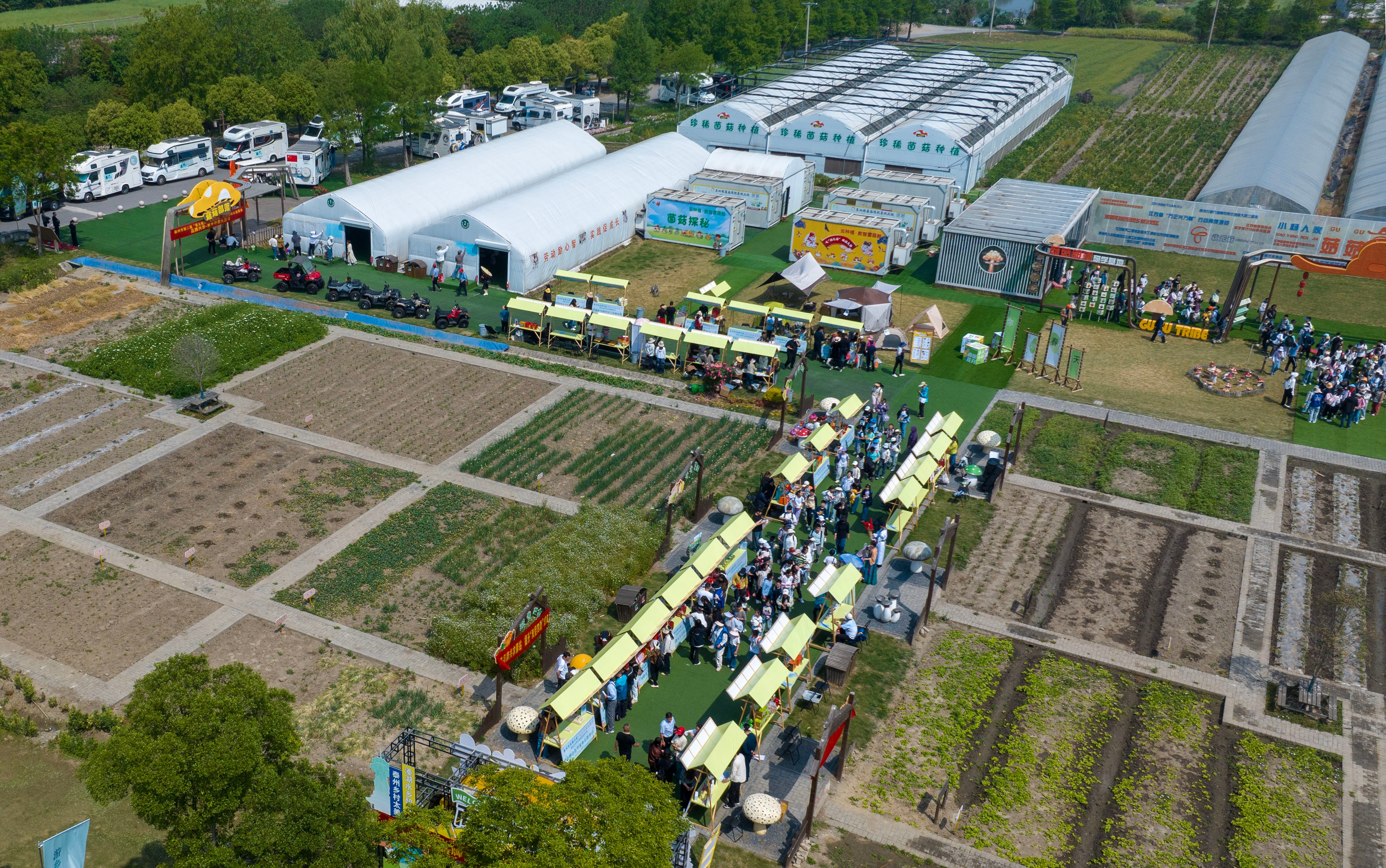 近年来,姜堰区锚定“旅游兴区”战略,以“旅游+百业”融合发展为路径,全力构建全域旅游新格局。在活动现场,近百辆房车齐聚“菇菇部落”,展现露营新业态的独特魅力。来自各地的车友穿梭于美食文创市集,选购特色好物,让乡村人气旺起来、消费热起来。“这里的山水风光让人陶醉,自由选择路线,一路领略田园美景,品尝农家美味,这种慢生活正是我们向往的。”外地车友王星的话语,道出了众多游客的心声。